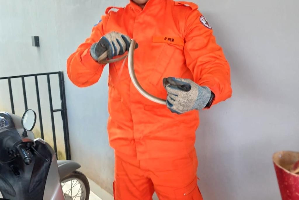 O Corpo de Bombeiros Militar de Mato Grosso (CBMMT) realizou, na manhã de sábado (11.4), o resgate de uma serpente que estava no interior de