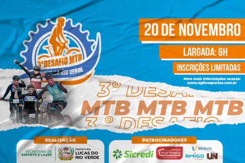 Encerrando as disputas de Mountain Bike (MTB) do ano, acontecerá no dia 20 de novembro a terceira etapa do Circuito Municipal de MTB de Lucas do Rio Verde. A atividade esportiva estará com inscrições abertas a partir desta quinta-feira (31) e segue até o dia 13 de novembro, podendo ser encerrada antes se completar o número de vagas.