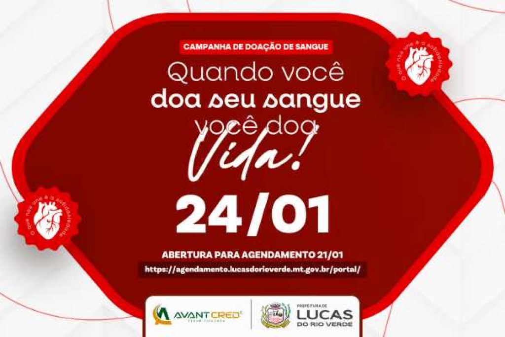 Começa nesta quinta-feira (22), o agendamento para a Campanha de Doação de Sangue. A iniciativa é da Secretaria Municipal de Saúde de Lucas do Rio Verde e Banco de Sangue de Sorriso.