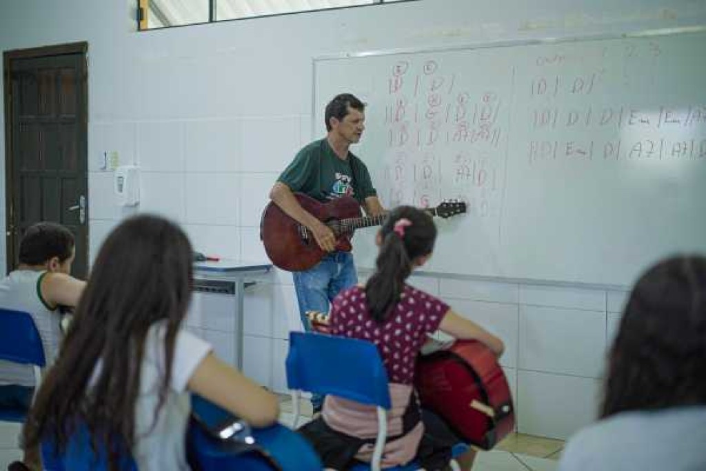 A aluna Tamires da Hora conta que aprendeu a tocar violão na oficina oferecida pela escola e que sonha em se tornar professora quando crescer. “Gosto de aprender os novos acordes e as músicas que o professor ensina. Escolhi participar dessa oficina porque pode me ajudar no futuro, já que quero ser professora de violão.”