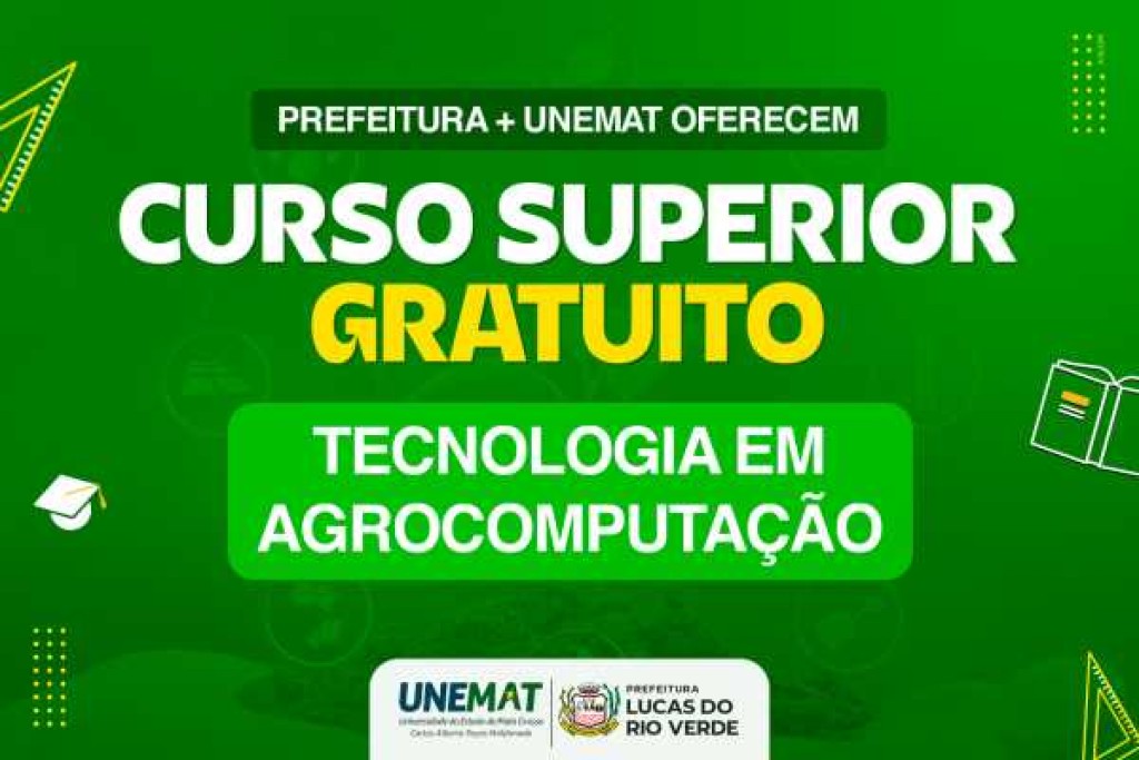 A partir de uma iniciativa da Prefeitura de Lucas do Rio Verde, a Universidade do Estado de Mato Grosso (Unemat) está ofertando 50 vagas para o curso superior de Tecnologia em Agrocomputação, na modalidade Turma Fora de Sede. As inscrições para o processo seletivo se encerram na próxima segunda-feira, dia 7 de julho.