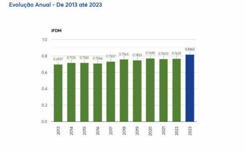 O salto no indicador representa uma evolução expressiva nos últimos dez anos. Em 2013, o índice de Lucas era de 0,6937. Desde então, o município cresceu de forma consistente, com o maior avanço registrado entre 2022 e 2023, quando o índice saltou de 0,7633 para 0,8160.
