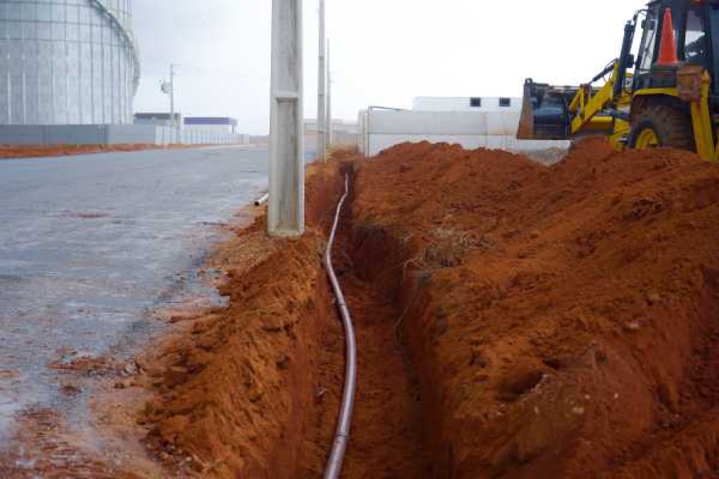 Segundo a equipe técnica do Saae, a fase de instalação da tubulação já alcançou aproximadamente 50% da obra total. Em breve, serão disponibilizados os pontos de ligação e cada empreendedor deverá solicitar sua conexão conforme a necessidade de abastecimento.