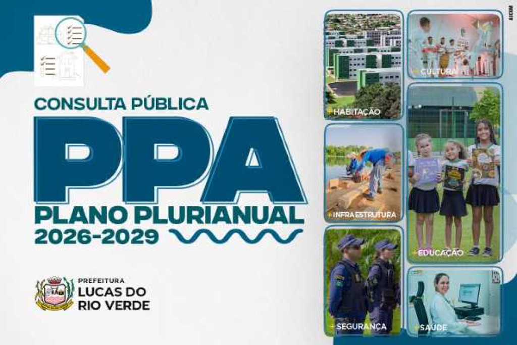 O PPA é o instrumento que vai orientar os investimentos públicos em Lucas do Rio Verde nos próximos quatro anos (2026 a 2029). As demandas apresentadas pela população podem se transformar em: Novas unidades de saúde e escolas; Melhorias na infraestrutura e pavimentação; Programas habitacionais; Projetos de segurança pública; Investimentos em esporte e lazer.