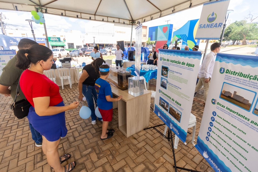 Uma estrutura com diversas atividades foi montada pelo Sanear para que os interessados pudessem compreender um pouco de como esse recurso é processado na cidade. Um dos atrativos foi justamente uma maquete simulando o processo de tratamento da água captada no Rio Vermelho, que é levada para a Estação de Tratamento de Água, na Avenida Lions, onde é processada para se tornar potável e, em seguida, ser distribuída na rede e nos reservatórios para abastecer os imóveis.
