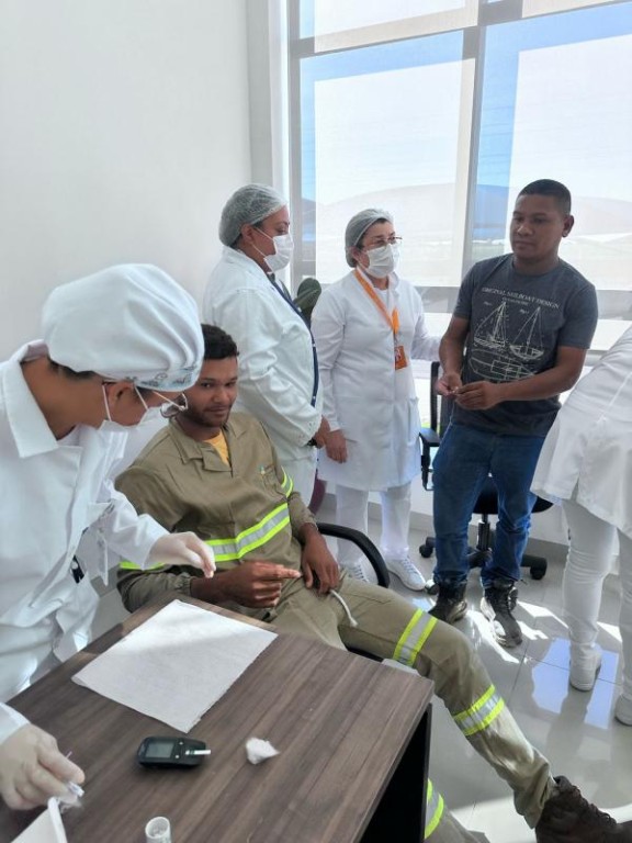 Aproximadamente 60 colaboradores puderam acessar atendimentos, como imunização, testes rápidos de glicemia, aferição da pressão arterial. No total, foram aplicadas 78 doses de vacina e realizados 52 testes de HGT, além de orientações sobre prevenção de doenças crônicas, contribuindo para a redução do absenteísmo e o aumento da qualidade de vida no ambiente corporativo.