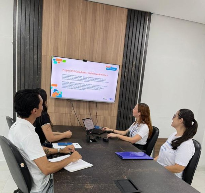 Nesta quarta-feira (10 de fevereiro), Diogo e Rawena de Oliveira, que também integra o Eco Sorriso, programa que reúne as ações de sustentabilidade desenvolvidas pela Prefeitura, puderam acompanhar como será desenvolvido o Pró-Catadores com as consultoras do Sebrae Amanda Pardiola e Michelly Girardi.