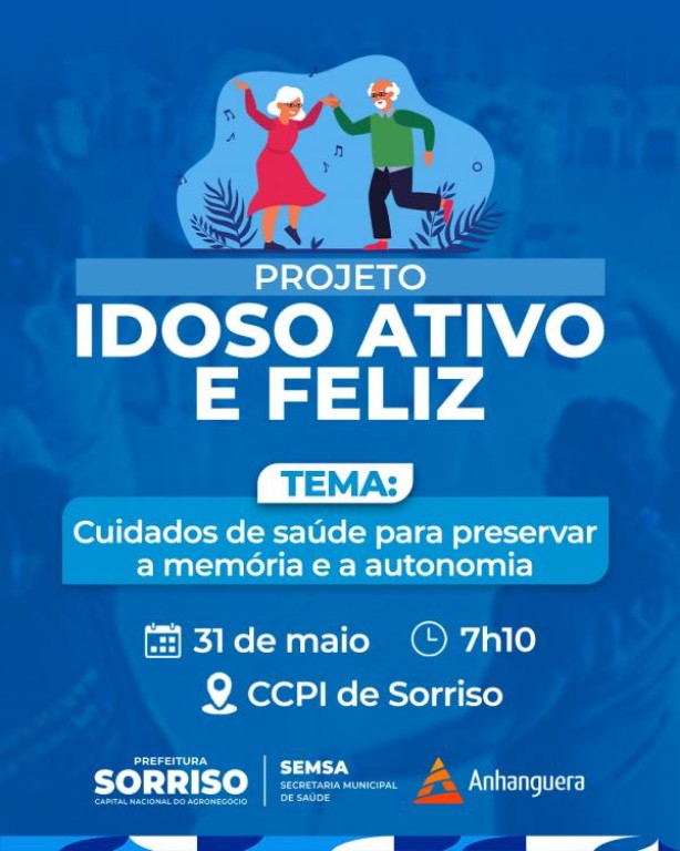 Lançado em maio de 2023, o programa Idoso Ativo e Feliz completa dois anos de atividades voltadas ao bem-estar da terceira idade. Para comemorar a data, o Centro de Convivência da Pessoa Idosa (CCPI) promoverá neste sábado (31) uma programação especial voltada à saúde, lazer e qualidade de vida.