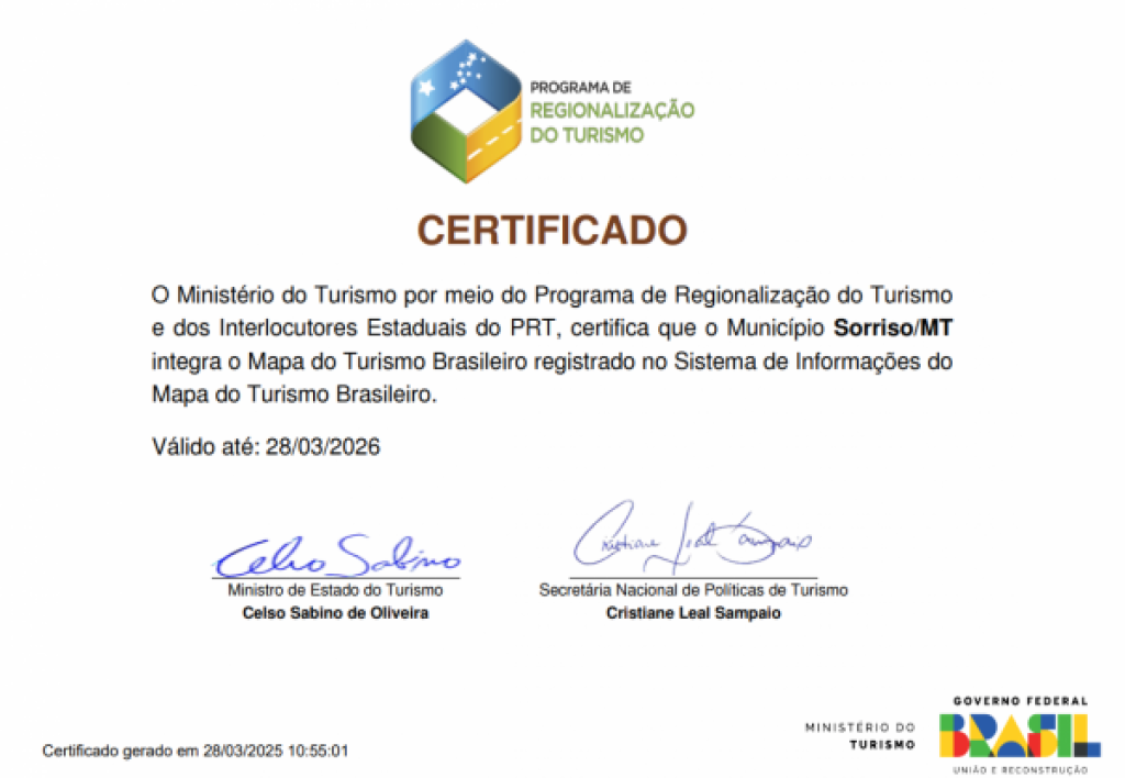 O Conselho Municipal de Turismo de Sorriso também foi certificado, evidenciando a organização e a efetividade das políticas públicas voltadas ao setor. Em reunião realizada em janeiro de 2025, foram discutidas estratégias para impulsionar o turismo local, como o monitoramento do fluxo turístico e a elaboração de um calendário de eventos.