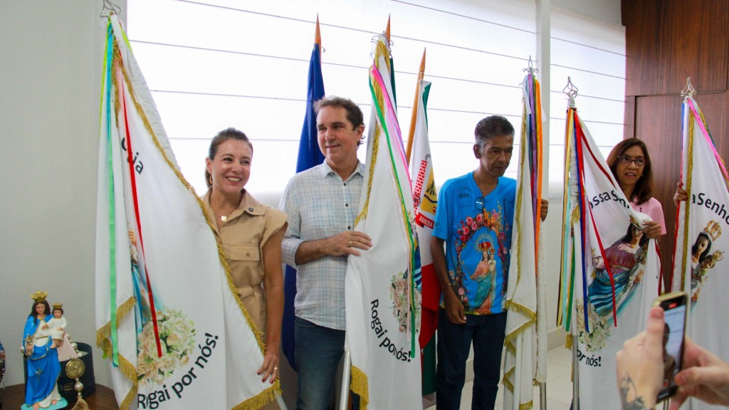 A prefeita por Várzea Grande, Flávia Moretti e o vice-prefeito, Sebastião dos Reis Gonçalves – Tião da Zaeli, ambos do PL, receberam a bandeira e os festeiros da festa de Nossa Senhora da Guia, que é o evento religioso mais tradicional do município.