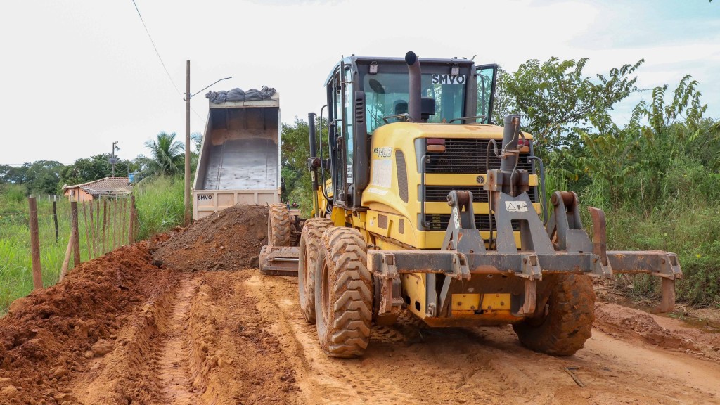 Além da recuperação de vias pavimentadas, equipes executam serviços de patrolamento e cascalhamento no distrito da Passagem da Conceição e no bairro Vitória Régia.