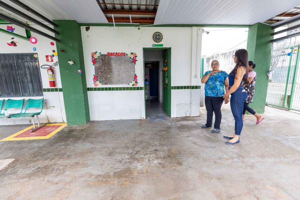 A imagem mostra a foto da secretária-adjunta de Gestão Administrativa, Jessika Nayara Silva Oliveira e da diretora do CEIC Rosângela Campos, durante vistoria na CEIC Rosângela Campos.