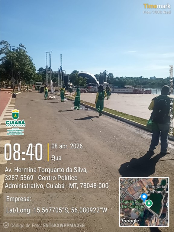 Paralelamente, outra equipe com cerca de 50 trabalhadores atuou na limpeza das vias onde foi realizada a 37ª Corrida Bom Jesus de Cuiabá, também na manhã desta quarta-feira (8). A ação resultou na retirada de aproximadamente 5 toneladas de resíduos das vias.