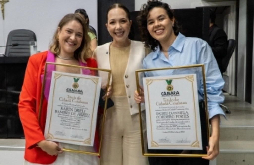 Maysa Leão entregou, nesta quinta-feira (13), durante sessão da Câmara Municipal de Cuiabá, o título de Cidadã Cuiabana às empreendedoras Ingrid Fortes e Karen Abreu, proprietárias da The Whole, uma empresa que tem se destacado no apoio a negócios locais. A homenagem reconhece a trajetória das empresárias na área de branding, onde têm descomplicado e impulsionado o crescimento de diversas marcas na capital mato-grossense.