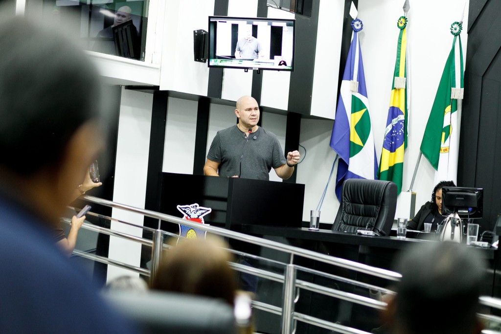 A imagem principal exibe o prefeito na Câmara de Vereadores de Cuiabá tratando do tema delicado na tribuna do parlamento.