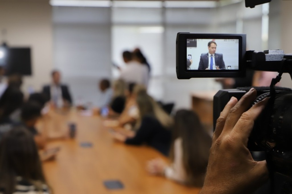 O procurador-geral de Justiça eleito para o biênio 2025-2027, Rodrigo Fonseca Costa, concedeu entrevista coletiva na manhã desta quinta-feira (6), na Sede das Promotorias de Justiça de Cuiabá. O futuro chefe do Ministério Público de Mato Grosso, que será empossado amanhã (7), recebeu jornalistas de 21 veículos de comunicação para um café da manhã.