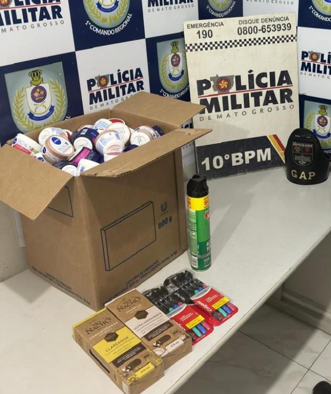 Confirmando os fatos, os policiais encontraram com o homem produtos como shampoo, condicionador de cabelo, mais de 130 cremes para rosto, kits de escova de dente e também um inseticida.