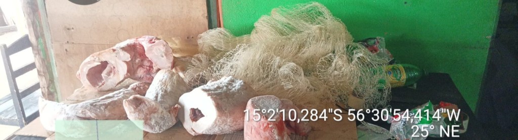 Outra ação ocorreu na segunda (27.10) após uma denúncia anônima sobre o comércio às margens da rodovia BR-163/364. No estabelecimento, a equipe identificou a guarda irregular do produto de origem de fauna silvestre armazenado em um freezer, além de 1 freezer horizontal e 1 tarrafa.