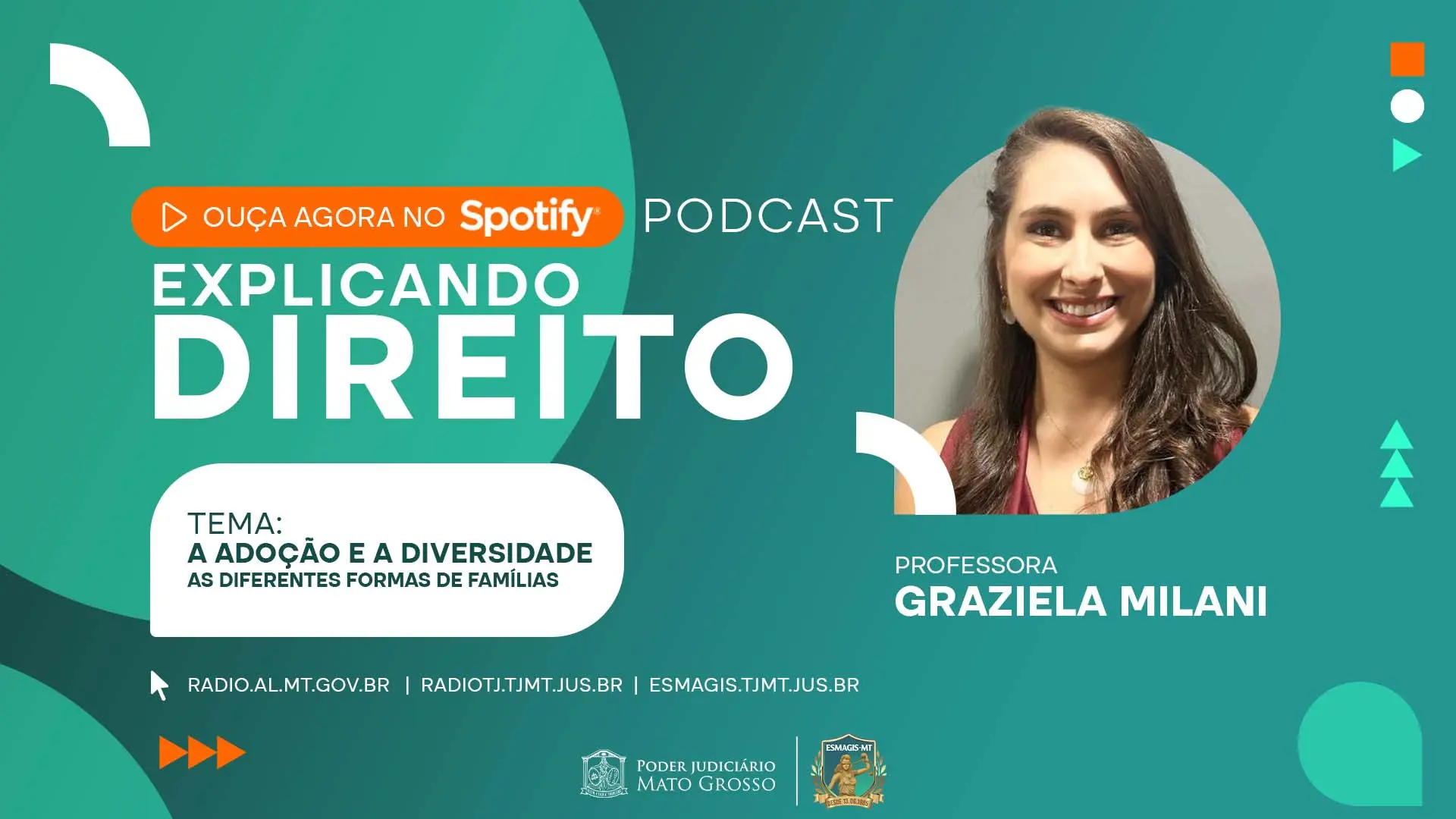Nesta semana, a professora e assistente social Graziela Milani Leal, especialista em intervenção social com famílias e integrante da equipe nacional do Sistema Nacional de Adoção e Acolhimento do Conselho Nacional de Justiça, é a entrevistada do podcast Explicando Direito. Ela conversa com a jornalista Elaine Coimbra, da Rádio TJ, sobre adoção e as diversas formas de família.