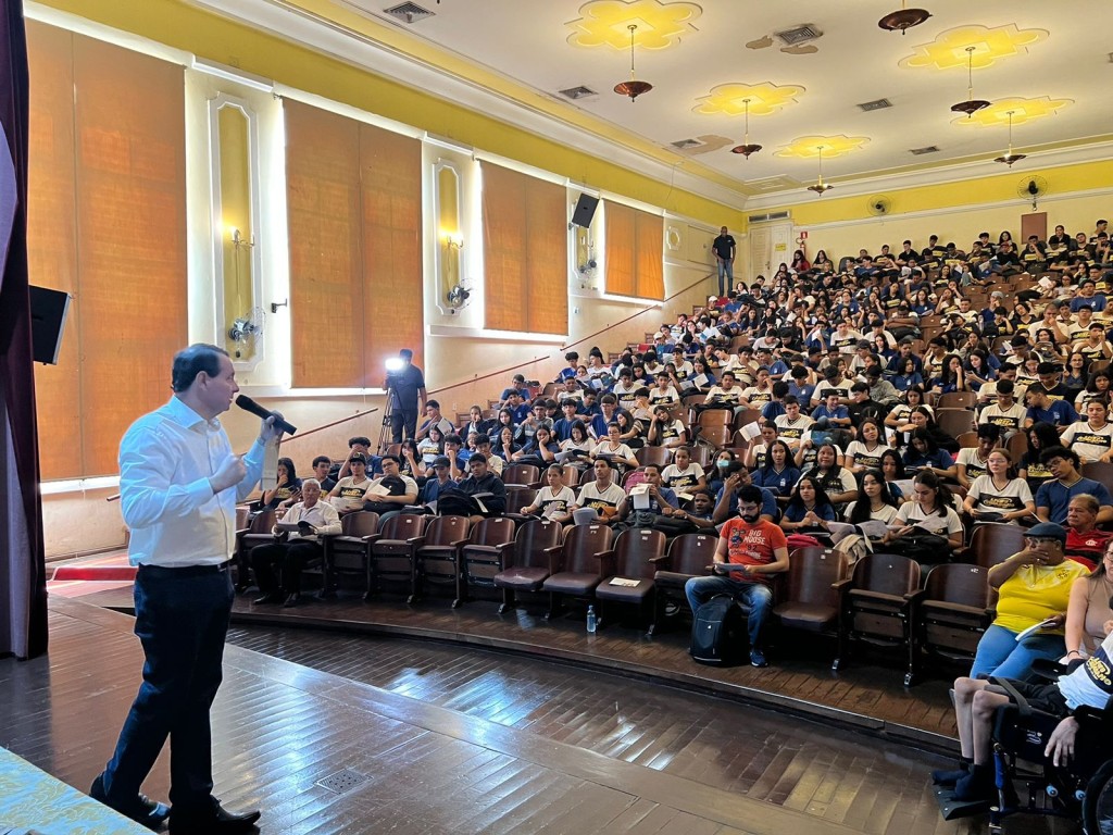 Com o tema ‘Como funcionam os Juizados Especiais’, o projeto ‘Nosso Judiciário’ atendeu 420 alunos do Ensino Médio na Escola Estadual Liceu Cuiabano, na manhã dessa quinta-feira (12 de setembro). Essa é uma das ações encontradas pelo Tribunal de Justiça de Mato Grosso para se aproximar dos jovens que são o futuro da sociedade, levando até eles informações sobre o Judiciário. Nesses quase 10 anos do programa, 32.426 alunos foram contemplados e 143 escolas, tanto públicas como privadas, já foram atendidas com a realização de palestras e também a distribuição de cartilhas sobre o Poder Judiciário. O ‘Nosso Judiciário’ dialoga sobre os direitos e deveres como cidadãos aos jovens, além de alertar sobre os principais crimes cometidos por indivíduos nessa fase da adolescência, como explica o técnico Judiciário do TJMT, Neif Feguri, um dos responsáveis pelo projeto e que ministrou a palestra.