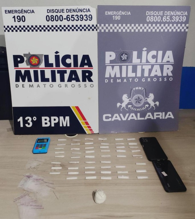 Equipes do 1º Esquadrão Independente de Policiamento Montado (EIPMON) prenderam um integrante de facção criminosa, de 19 anos, por tráfico ilícito de drogas, na noite desta quarta-feira (14.5), em Lucas do Rio Verde. Com o suspeito, foram encontradas 52 porções de cocaína.