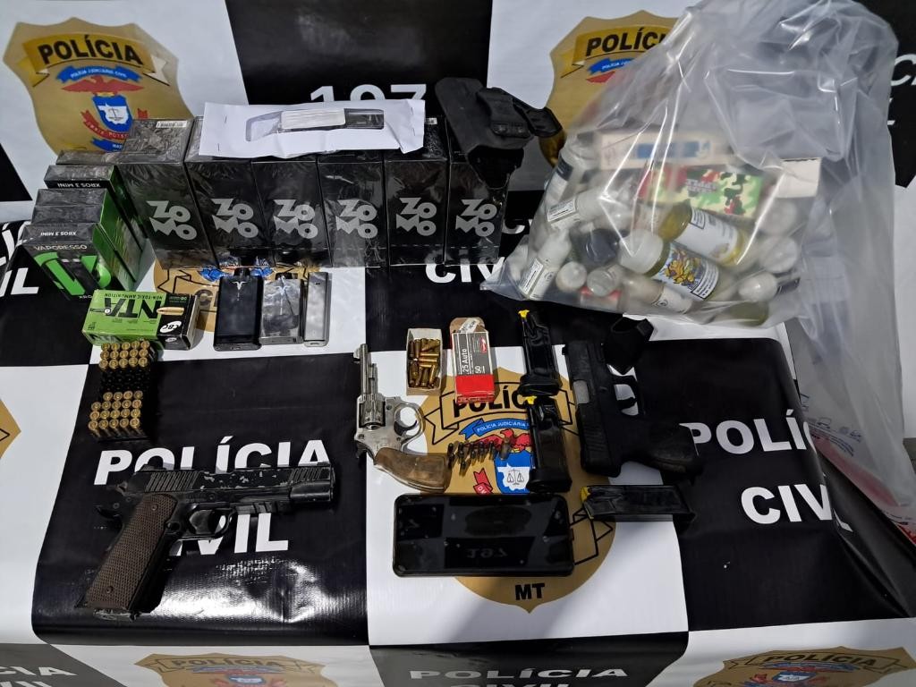 Policiais civis da Delegacia de Pedra Preta cumpriram, na manhã desta sexta-feira (17.1), mandado de busca que resultou na apreensão de armas de fogo e materiais de venda proibida no País. Entre eles, cigarros eletrônicos em uma tabacaria da cidade. O dono da loja foi preso em flagrante.