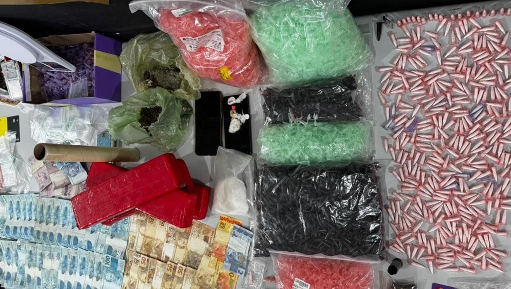 Na casa do investigado, foram encontradas mais porções de entorpecentes. A mulher que o acompanhava confessou que recebia valores do tráfico que eram repassados para o líder do grupo criminoso.