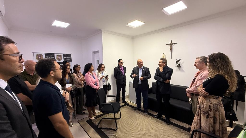 Durante a visita, os servidores do Poder Judiciário tiveram a oportunidade de conhecer o funcionamento da delegacia e entender como é realizado o atendimento às pessoas idosas na unidade da Polícia Civil.