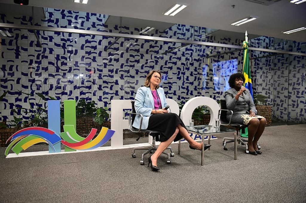 Em entrevista coletiva após o Fórum Parlamentar do G20, nesta quarta-feira (6), a líder da Bancada Feminina no Senado Federal, Leila Barros (PDT- DF), e a coordenadora da Bancada Feminina da Câmara dos Deputados, Benedita da Silva (PT-RJ), comentaram a possibilidade de uma mulher assumir a Presidência do Senado e da Câmara, o que interpretaram como um “desafio” para a política nacional. As parlamentares lideraram os debates sobre a implementação das recomendações da 1ª Reunião de Mulheres Parlamentares do P20, realizada em Maceió em julho passado.