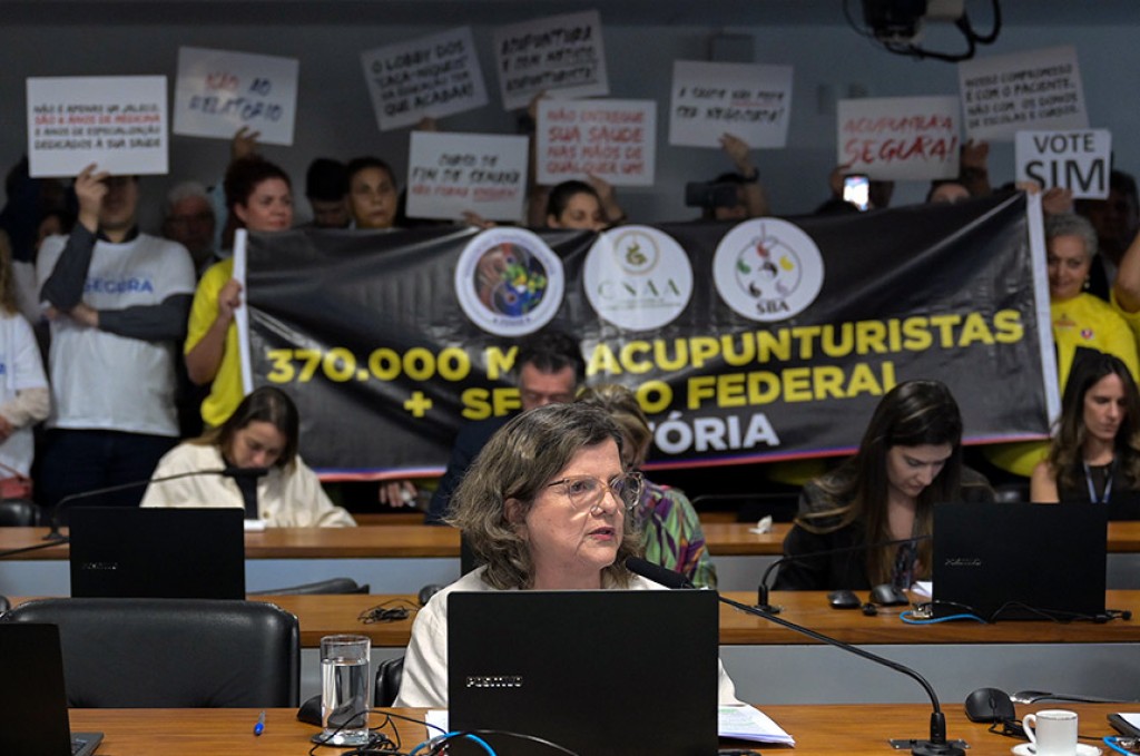 — Se a gente vai votar hoje ou amanhã, o relatório será o mesmo. Nós estamos de um lado com um setor da área e a emenda do Dr. Hiran representa isto, é radicalmente contra a regulamentação da acupuntura para quem não é médico; e, do outro lado, a possibilidade de regulamentar esta prática já efetivamente feita por centenas dos chamados acupunturistas. Sendo que o projeto original e o relatório do senador Paim, que eu assimilei, regulamenta essa prática. No meio, uma prática milenar que todos referenciam, da civilização chinesa, e que tem os seus rebatimentos aqui — argumentou Teresa Leitão.