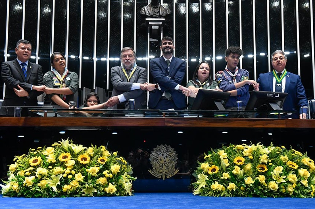O Senado realizou nesta segunda-feira (25) sessão especial pelo centenário da União dos Escoteiros do Brasil (UEB). A entidade é uma organização sem fins lucrativos, de caráter educacional, cultural, beneficente e filantrópico, que congrega os praticantes do Escotismo no Brasil e é reconhecida oficialmente pela Organização Mundial do Movimento Escoteiro.
